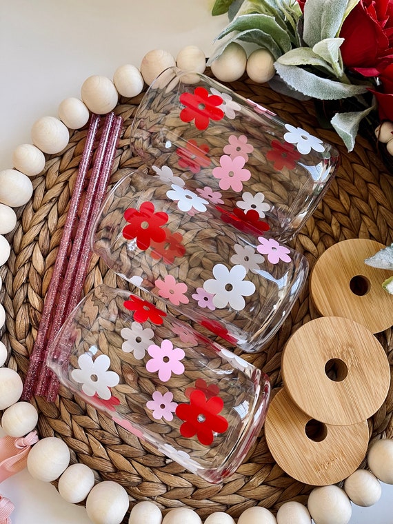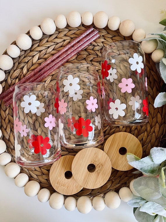 Boho Coffee Glass I Boho Flowers Beer Can Glass Flower Beer Etsy